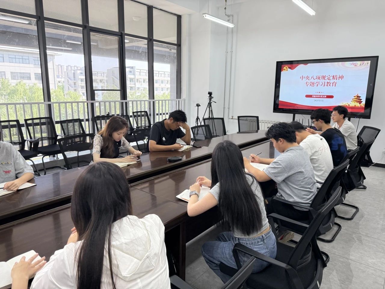 5月12日,ms88明升卓越本科生党支部于学院319会议室开展深入贯彻中央八项规定精神学习教育,党支部书记张馨月、党支部副书记刘平利及全体学生党员参会。