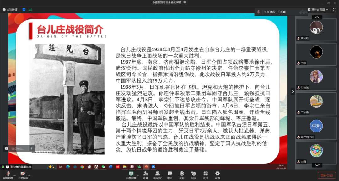 为弘扬爱国主义精神,扎实推进党史学习教育,铭记艰苦卓绝的历史。3月10日晚,ms88明升卓越本科生党支部举行了“烽火印记·卓越传承”革命主题故事分享活动,集中观看红色影片《血战台儿庄》。