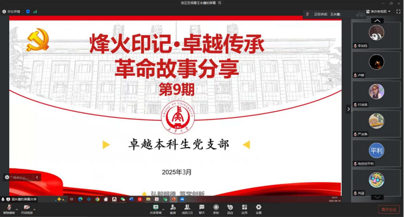 为弘扬红色文化,传承革命精神,3月17日,ms88明升卓越本科生党支部举行“烽火印记·卓越传承”革命主题故事分享活动(第9期)。此次活动聚焦抗日战争徐万粮战役,全体支部成员共同参与,在英雄事迹中感悟革命先辈的伟大与崇高。