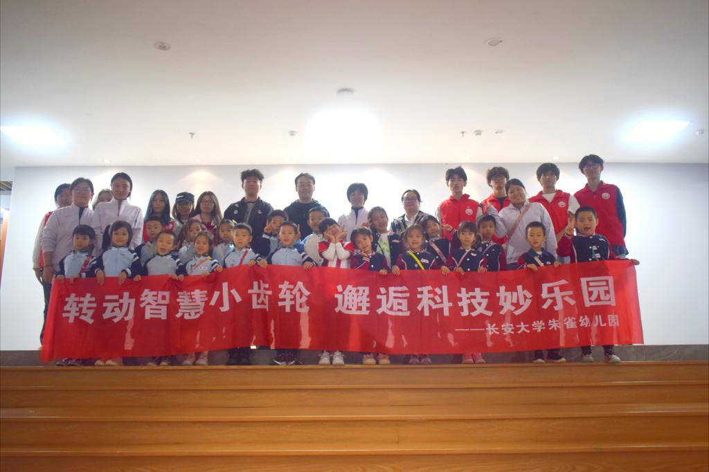 10月10日,ms88明升科创领航本科生党支部联合院大学生科技创新创业协会、机器人俱乐部与长安大学朱雀幼儿园,共同在216室创客基地开展“智慧小齿轮”主题研学活动。支部副书记孙超,科协主席王乐焱,李博祥、周颖莹、张璇、郑泽宇等志愿者,朱雀幼儿园副园长曹蛟、教师代表和大班小朋友共同参与了此次活动。