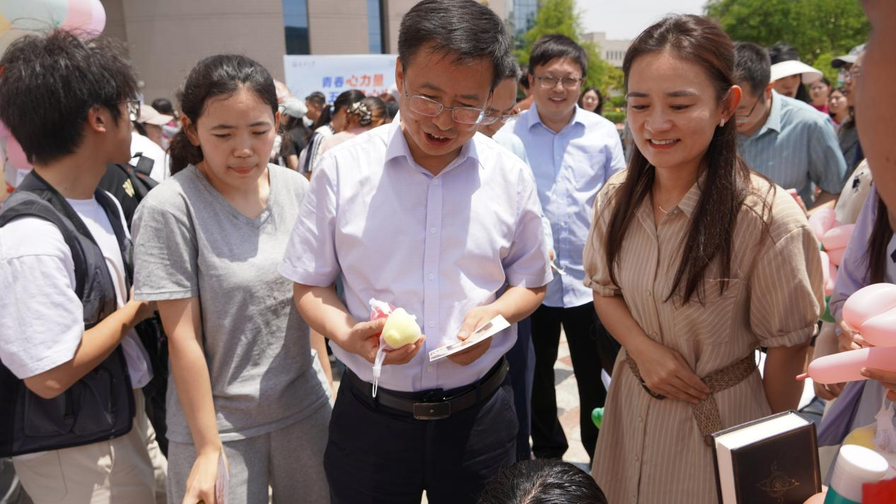 活动中,校党委副书记李文雄等学校各级领导来到学院帐篷点位参与互动打卡游戏,指导心理育人工作。