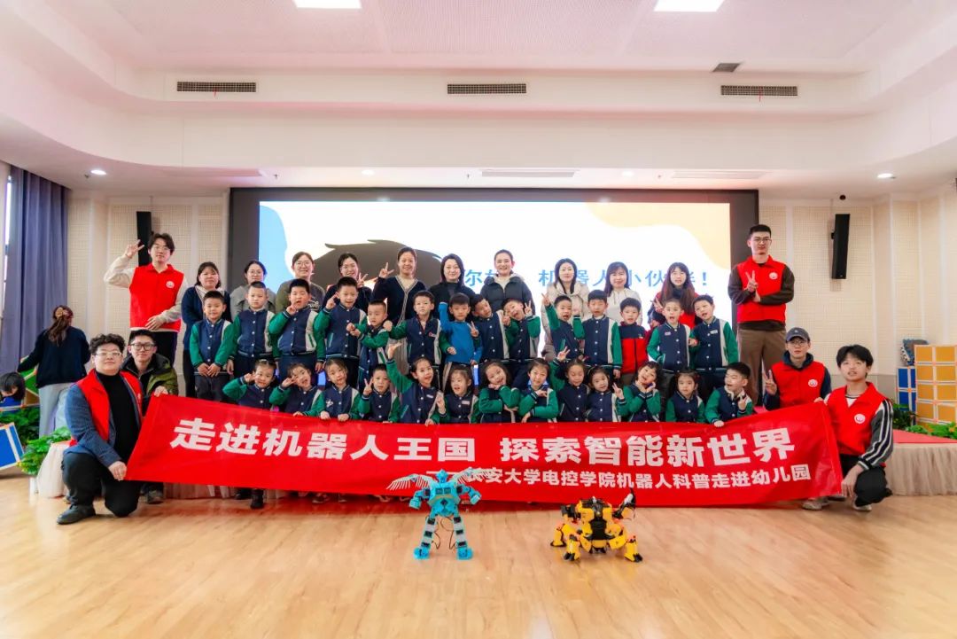 为深入推进大中小学思想政治教育一体化建设,贯彻落实习近平总书记关于科技创新的重要论述,启迪幼儿科学智慧,增强新时代大学生社会责任感,3月4日上午,ms88明升卓越本科生党支部联合电控科协、机器人俱乐部赴长安大学朱雀幼儿园,开展了一场“科技+教育”志愿服务活动。ms88明升党委副书记高婷婷、团委书记李慧、学生代表,朱雀幼儿园园长沈静、教师代表和全体大班小朋友参与了本次活动。
