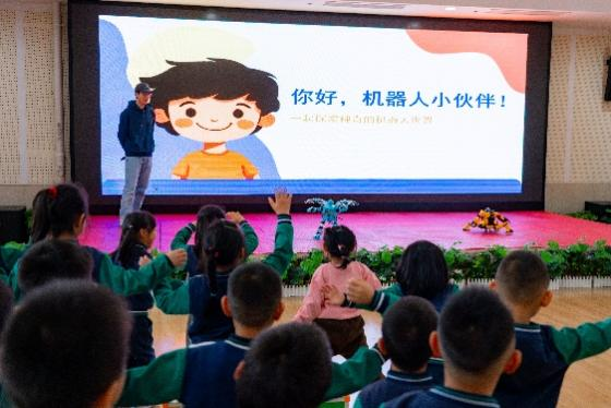 活动现场,机器人俱乐部赵浩用生动有趣的语言向孩子们介绍了机器人的基本原理、分类、发展历程以及在现代社会中的应用。通过PPT展示、实物模型及互动问答等形式,孩子们不仅学到了丰富的科学知识,还被机器人技术的神奇魅力深深吸引,纷纷表示想要了解更多关于机器人的知识。
