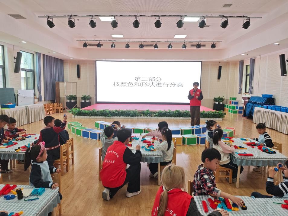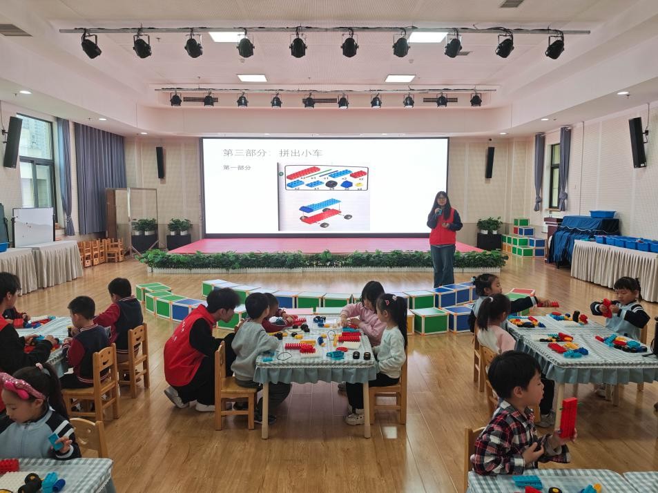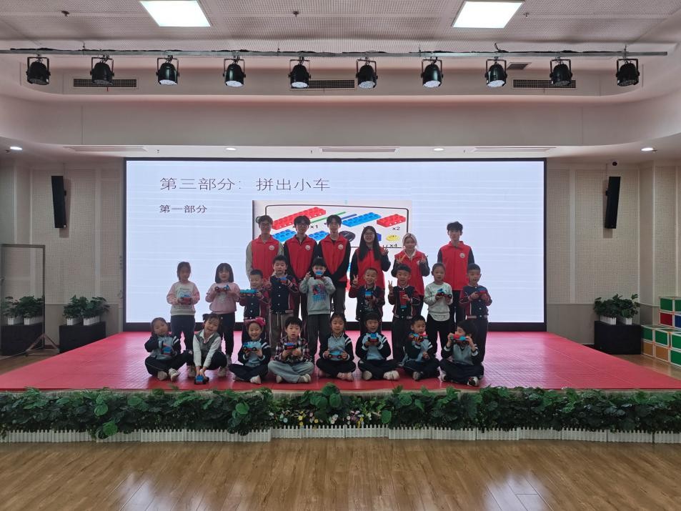 在“拼装小车”环节,小朋友们在志愿者们的耐心指导下,一步步将散装零件组装成可顺畅行驶的积木小车。整个过程中,志愿者们细心辅助、积极鼓励,帮助孩子们顺利完成创作,体验动手搭建的乐趣。