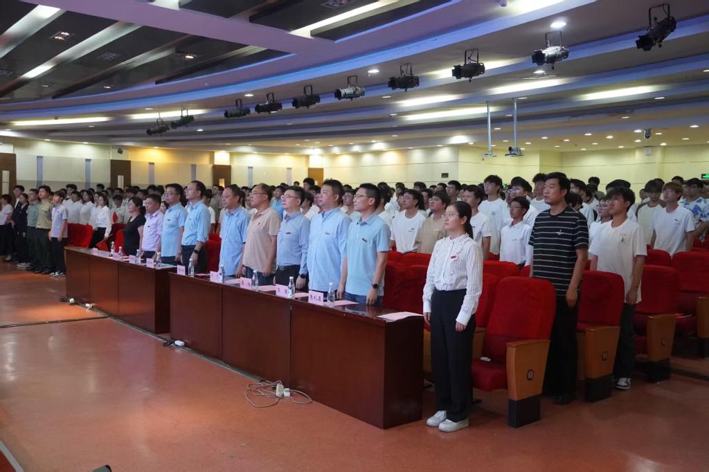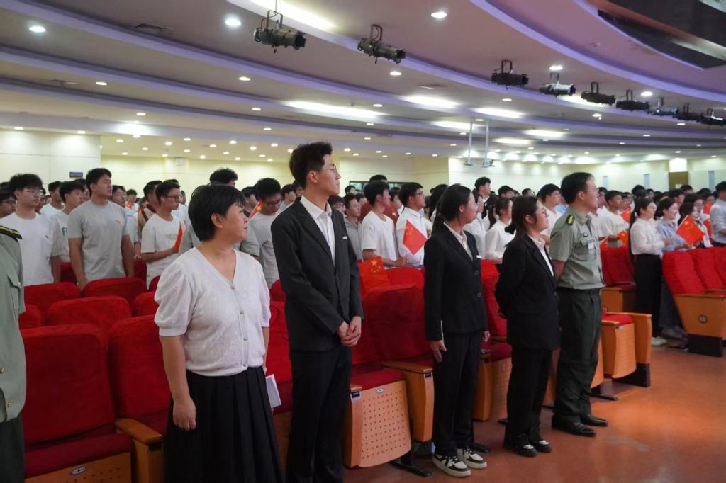 全体师生齐唱《歌唱祖国》,用嘹亮的歌声表达了对祖国的热爱和祝福。至此,ms88明升2025级新生开学典礼圆满结束。